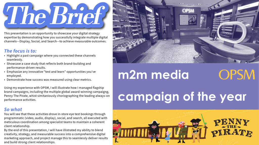 Overview: This case study highlights an integrated digital strategy. It successfully balanced the dual objectives. It focused on building OPSM’s brand equity while driving measurable business outcomes. The campaign seamlessly leveraged key digital channels. It delivered award-winning creative work. It also achieved significant in-store conversions. This showcased expertise in aligning brand-building and performance-focused campaigns.